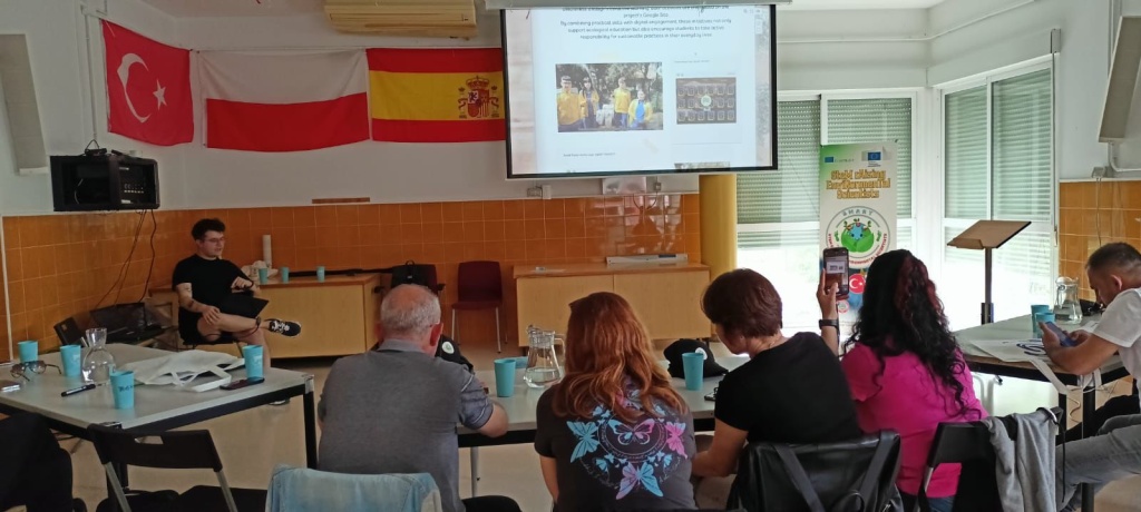 Erasmus+ SMART Projesinin ikinci gününde Dumlupınar Ilkokulu, Muğla şehri ve Logo yarışması sunumları okulumuz proje koordinatörü Fisün ÖZARTAN DEMİR ve İngilizce Öğretmeni Cennet KARA GÜDEN tarafından yapıldı.